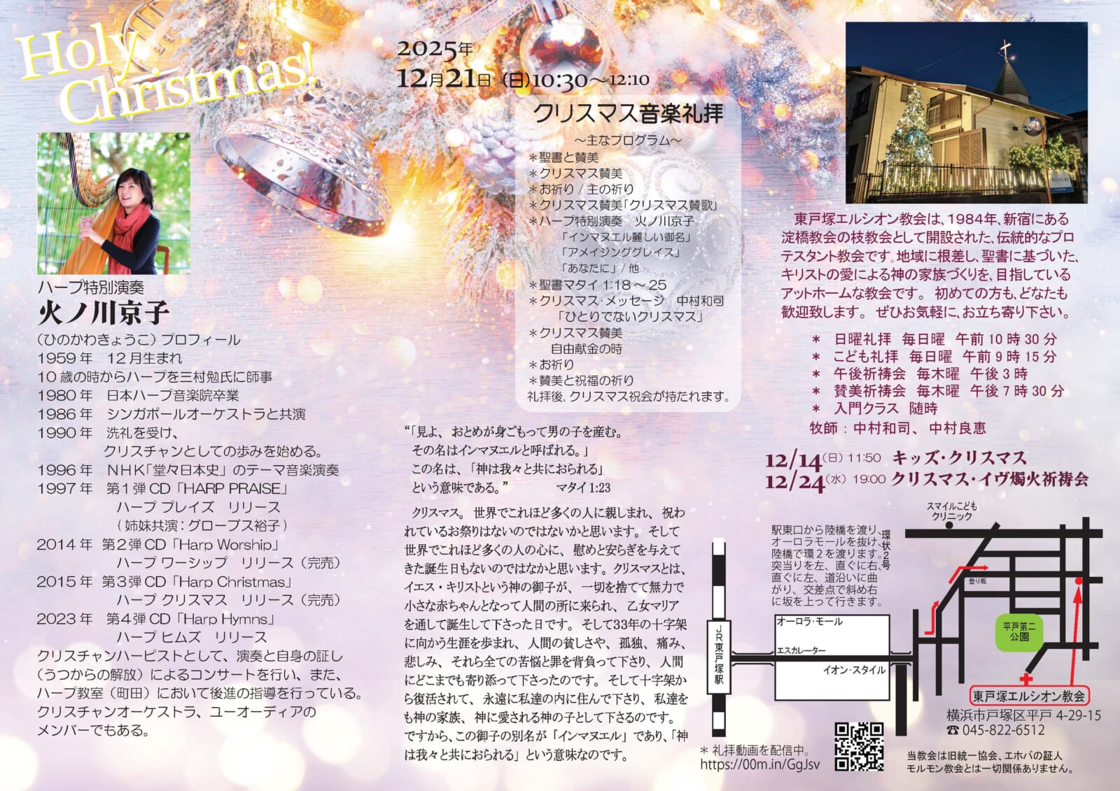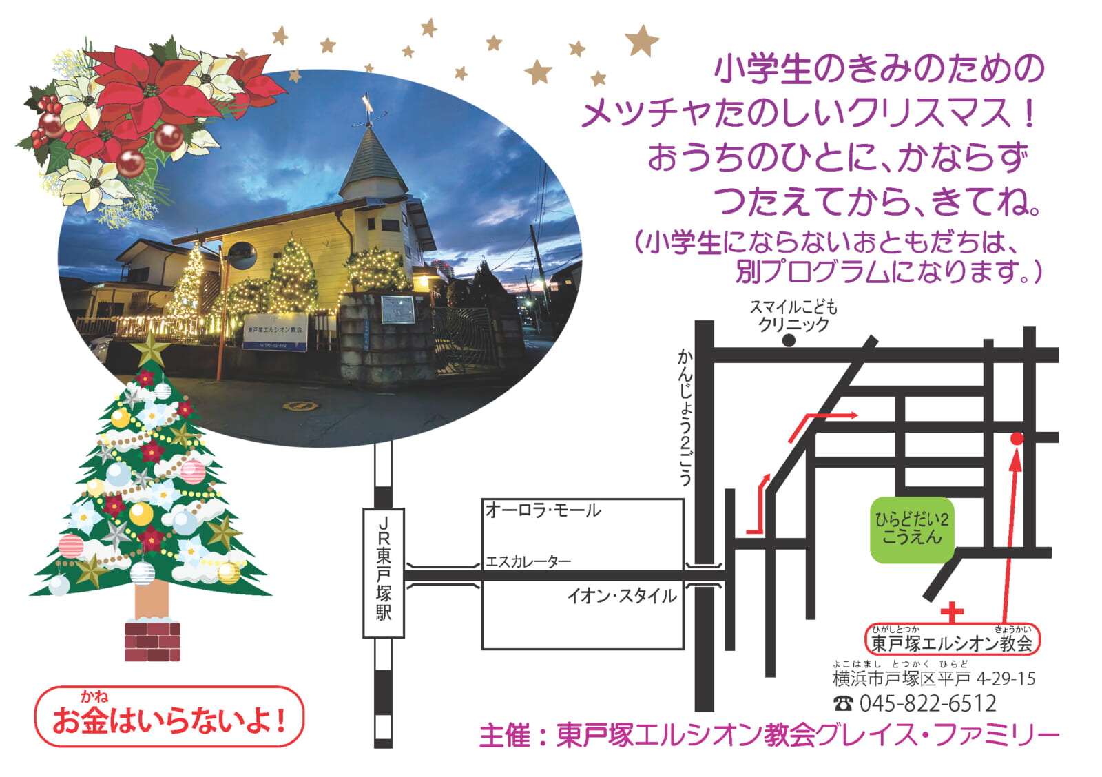 「イベントのチラシを見て興味がある」「教会の中を見てみたい」「賛美歌を聞いてみたい」「本家のクリスマスっぽいイベントのぞいてみたい」「疲れた、休みたい」など、気軽にお越しください。